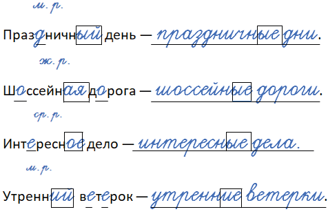 Прочитайте. Вставьте пропущенные буквы. Укажите род имён прилагательных.