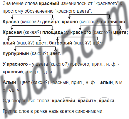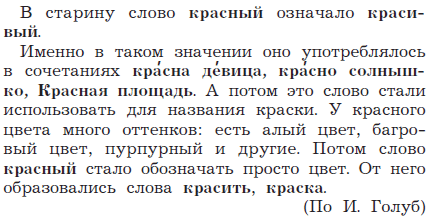 Выборочный диктант. Прочитай текст. Как изменилось значение прилагательного красный? Послушай текст ещё раз. Запиши только пары слов прил. + сущ. из 2-го абзаца. Выдели окончания у прилагательных. Покажи графически, от какого слова к какому ставится вопрос. Разбери два любых прилагательных как часть речи.