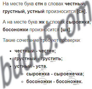 Какие звуки произносятся на месте букв стн в словах честный, грустный, устный? А на месте букв жк в словах сыроежка, босоножки? Какие трудности возникают при написании слов, где есть звонкий парный согласный перед парным глухим или наоборот или согласный звук в конце слова? Покажи на примерах, как справиться с