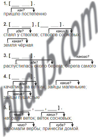 Перечитай текст из упр. 41. Составь схему каждого предложения этого текста. Поставь вопросы от главных членов предложения к второстепенным. Выпиши словосочетания из каждого предложения.