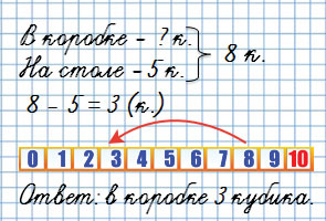 2) Всего 8 кубиков. На столе 5 из них. Сколько кубиков в коробке?