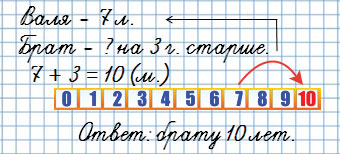3. Вале 7 лет, а её брат на 3 года старше. Сколько лет Валиному брату?