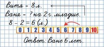 4. Вите 8 лет, а Ваня на 2 года моложе. Сколько лет Ване?