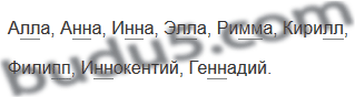 Какие мужские и женские имена пишутся с удвоенной буквой согласного? Напиши эти имена. Подчеркни орфограмму.