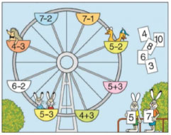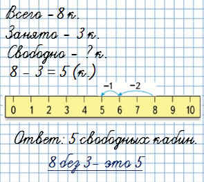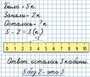 2) На аттракционе «колесо обозрения» 5 свободных кабин, но в 2 кабины уже проданы билеты. Сколько ещё свободных кабин осталось?