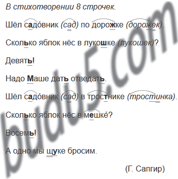 Письмо по памяти. Прочитай. Сколько строчек в стихотворении? Какие буквы ты вставишь вместо пропусков? Почему? Объясни. Впиши буквы простым карандашом. Закрой учебник, запиши по памяти.