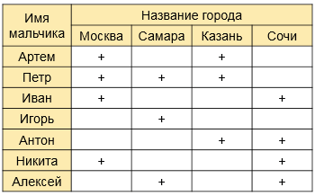 3) Кто из мальчиков был в Самаре и в Сочи?