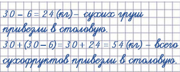6. Для школьной столовой привезли сухие фрукты: яблок 30 кг, а груш на 6 кг меньше.