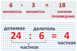 1) Если произведение двух множителей разделить на один из множителей, то получится второй множитель.