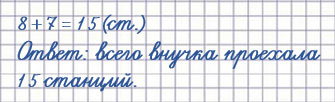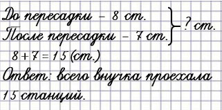 16. Внучка ехала на метро навестить бабушку. До пересадки она проехала 8 станций, после пересадки ещё 7. Сколько всего станций проехала внучка?