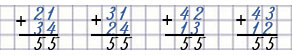 Используй в каждом примере цифры 1, 2, 3, и 4, по одному разу каждую. Восстанови слагаемые.