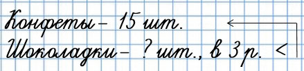 В наборе было 15 конфет, а шоколадок - в 3 раза меньше. Сколько шоколадок было в букете?