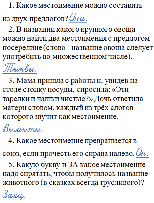 1. Какое местоимение можно составить из двух предлогов? она (о, на).