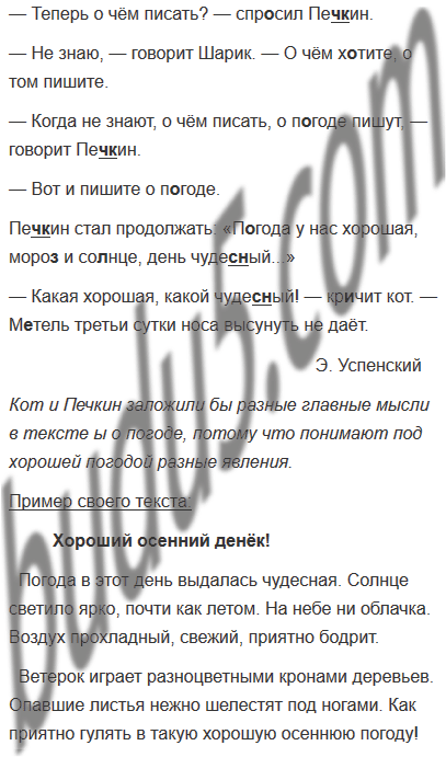Составьте и запишите текст о сегодняшней погоде. Определите его главную мысль, отразите её в заглавии к тексту.