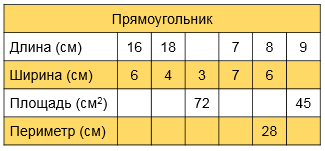 | Ширина (см) | 6 | 4 | 3 | 7 | 6 | 5 |