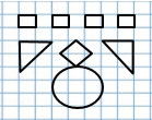 Отступив от них одну клеточку вниз, расположи посередине ромб, а по краям, симметрично друг другу, прямоугольные треугольники.