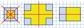 Площадь жёлтого квадрата: 2 • 2 = 4 см2.