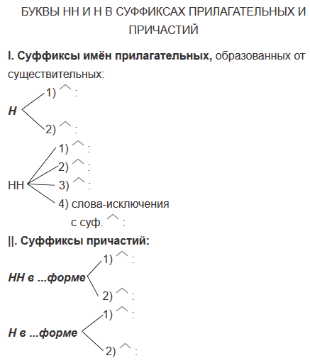 Заполните схемы, указывая суффиксы и приводя примеры на каждый случай.