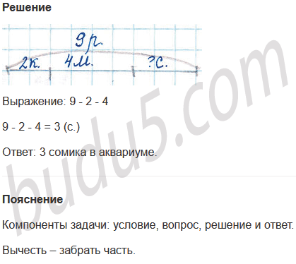 Задание № 7. В аквариуме 9 рыбок. Из них 2 карася, 4 меченосца, а остальные - сомики. Сколько сомиков в аквариуме?