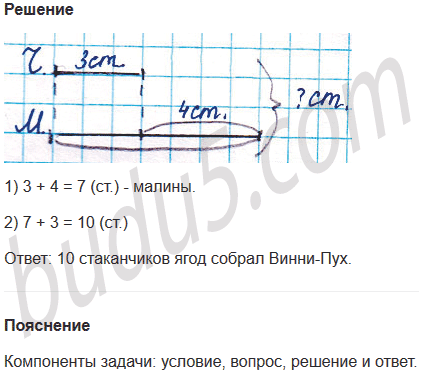 Задание № 5. Винни-Пух собрал 3 стаканчика черники, а малины - на 4 стаканчика больше. Сколько стаканчиков ягод собрал Винни-Пух?