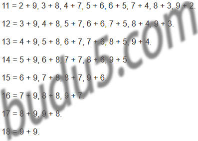 Задание № 2. На какие однозначные слагаемые можно разбить числа 11, 12, 13, 14, 15, 16, 17, 18?