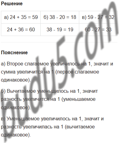 а) 24 + 35 = ![]() | б) 38 - 20 = ![]() | в) 59 - 27 = ![]() |
