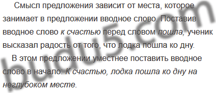 Зависит ли смысл предложения от места, которое занимает вводное слово в предложении? Какую ошибку сделал ученик N. сказав: «Лодка, к счастью, пошла ко дну на неглубоком месте»? (По В. Ивановой и др.)