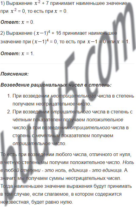 При каком значении переменной данное выражение принимает наименьшее значение: