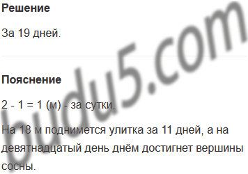Задание № 11. Высота сосны 20 м. По ней ползёт улитка, каждый день поднимаясь на 2 м вверх и каждую ночь опускаясь на 1 м вниз. За сколько дней улитка поднимается на вершину сосны?