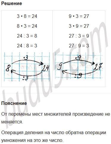 Задание № 9. Пользуясь таблицей умножения, составь 4 равенства из чисел: а) 3, 8, 24; б) 9, 3, 27. Построй графические модели.