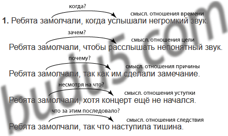 | Ребята замолчали | когда... чтобы... так как... хотя... так что... |