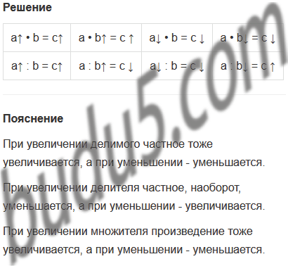 | а↑ : b = с↑ | а : b↑ = с ... | а↓ : b = с ... | а : b↓ = с ... |