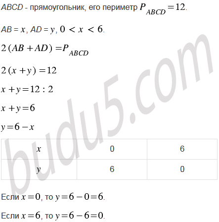 Периметр прямоугольника АВСD равен 12, АВ = , АD = , . Постройте график зависимости от . Отметьте на этом графике точку, соответствующую случаю, когда прямоугольник АВСD является квадратом.