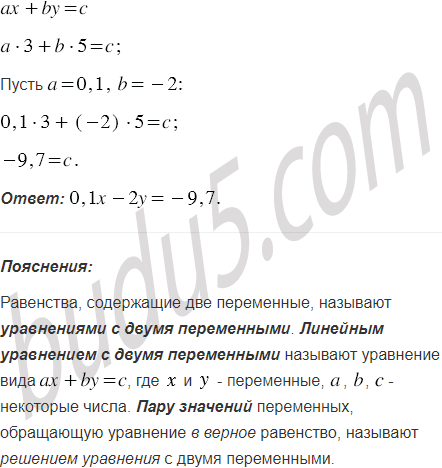 Составьте какое-нибудь линейное уравнение с двумя переменными, решением которого является пара чисел (3; 5).