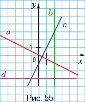 Какая из прямых, изображённых на рисунке 55, является графиком уравнения: