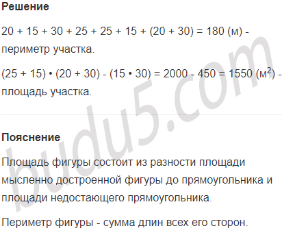 Задание № 9. На рисунке изображён план земельного участка и указаны некоторые его размеры. Найди площадь этого участка и его периметр.