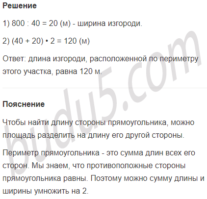 Задание № 10. Длина садового участка прямоугольной формы 40 м, а площадь - 8 соток (1 сотка = 100 м2). Чему равна длина изгороди, расположенной по периметру этого участка?