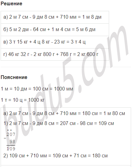 | а) 2 м 7 см - 9 дм 8 см + 710 мм |