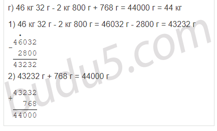 | г) 46 кг 32 г - 2 кг 800 г + 768 г |