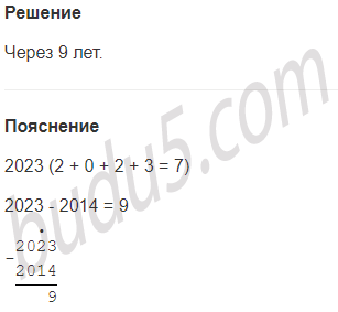 Задание № 14. На календаре 2014 год. Сумма цифр этого числа равна 7. Через сколько лет повторится такая же сумма?