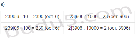 | а) 76534 : 10 | б) 80241 : 10 | в) 23906 : 10 |
