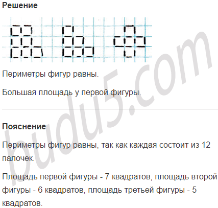 Задание № 14. Из 12 палочек сложи фигуры А, В, С. Определи, какая из этих фигур имеет больший периметр? Какая имеет большую площадь?