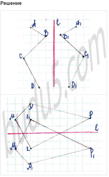Задание № 1. Построй в тетради фигуры, симметричные данным относительно прямой l. Как можно проверить правильность построения?