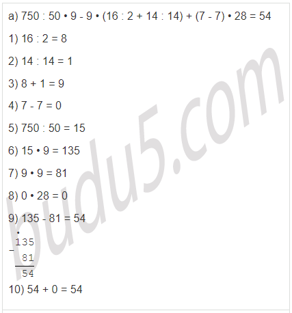 | а) 750 : 50 • 9 - 9 • (16 : 2 + 14 : 14) + (7 - 7) • 28 |