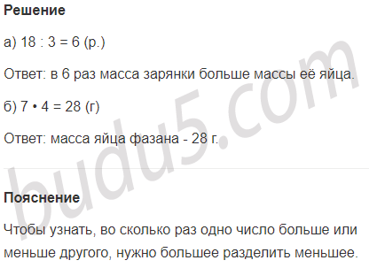 а) Масса птички зарянки 18 г, а её яйца - 3 г. Во сколько раз масса зарянки больше массы её яйца?