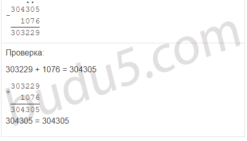 в) К какому числу надо прибавить число 1076, чтобы получить 304305?