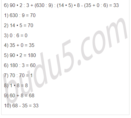 | б) 90 • 2 : 3 + (630 : 9) : (14 • 5) • 8 - (35 + 0 : 6) |