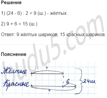 Задание № 5. У жонглёра было 24 красных и жёлтых шарика. Красных шариков было на 6 больше, чем жёлтых. Сколько шариков каждого вида было у жонглёра?