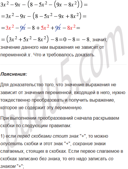 Докажите, что значение выражения не зависит от значения переменной.
