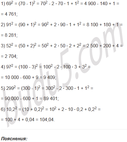 Используя формулу квадрата суммы или формулу квадрата разности, вычислите: